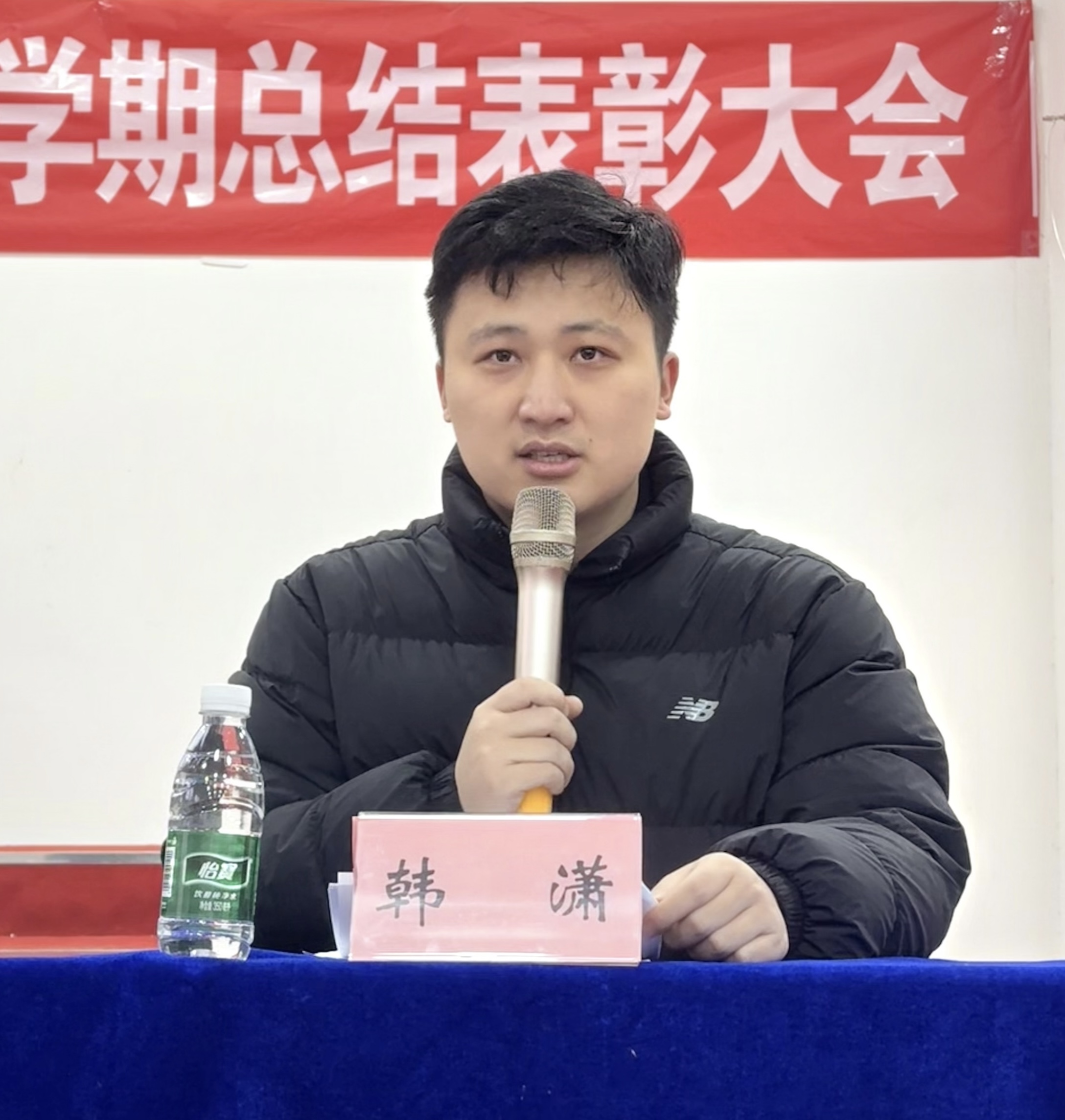教务处张正亚处长宣读期末考试表彰名单,肯定学子们在学业上的刻苦钻研与优异成果。